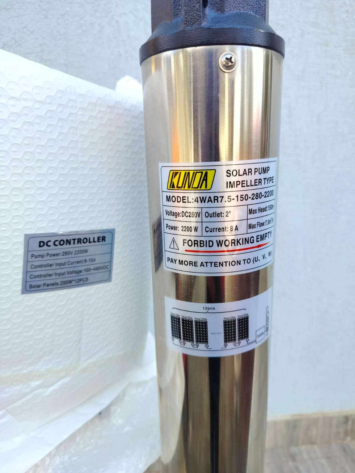 The 150M Solar Submersible Pump with Control Box is a high-performance water pumping system designed for deep boreholes, large farms, and off-grid water supply. It is built to lift water from depths of up to 150 meters, making it suitable for areas with deep underground water sources.
