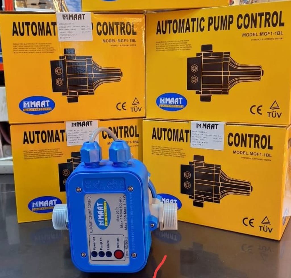 An Automatic Pump Control is an electronic device designed to automate the operation of water pumps by controlling when the pump starts and stops based on pressure or water flow conditions. It is typically installed inline with a water system and eliminates the need for manual switching, making water supply systems more efficient and convenient. When a tap is opened or pressure drops in the system, the controller automatically activates the pump, and when the flow stops or the desired pressure is reached, it shuts the pump off.