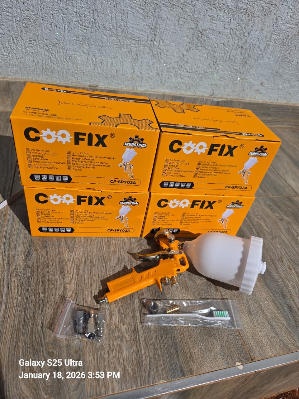 The Coofix Spray Gun 0.6L is a practical and efficient pneumatic painting tool designed for delivering smooth, even coatings across a variety of surfaces. With a 0.6-liter paint cup, it is well-suited for medium-sized painting jobs such as furniture finishing, automotive work, and general workshop applications.