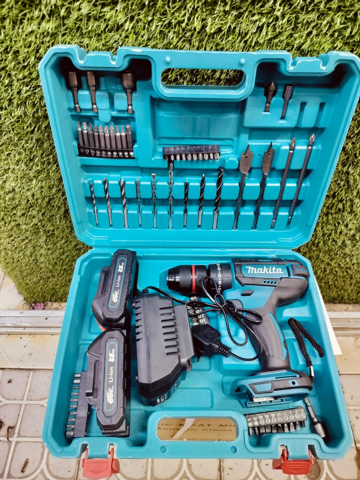 The Makita cordless drill 36V with a metallic chuck is a high-performance power tool designed for heavy-duty drilling and fastening tasks in construction, workshops, and home applications. It operates on a powerful 36V lithium-ion battery system, delivering strong torque and extended runtime for working on materials such as wood, metal, plastic, and light masonry.