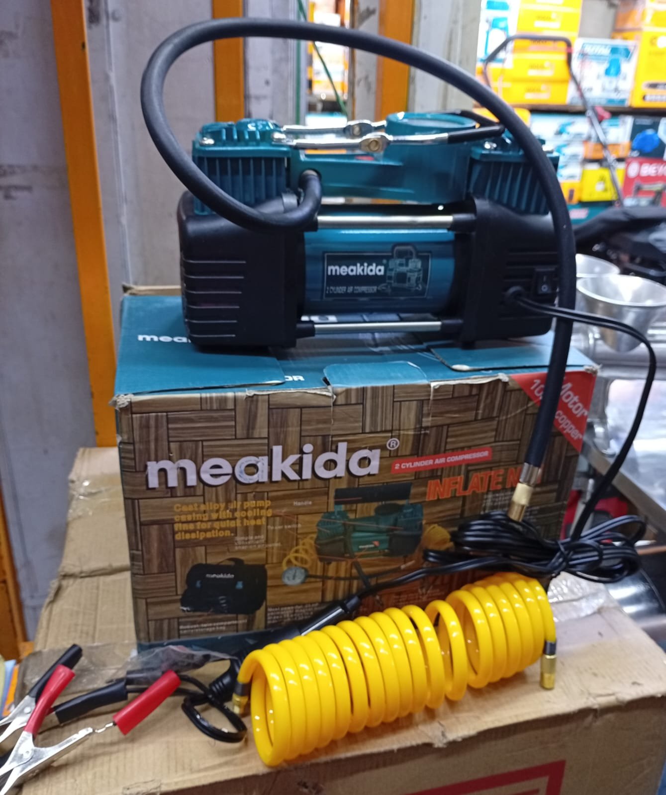 The Meakida 2-cylinder air compressor is a high-performance air compression machine designed to deliver strong and consistent airflow for professional and industrial applications. It is widely used in workshops, garages, construction sites, spray painting, tire inflation, and powering pneumatic tools such as impact wrenches and spray guns.