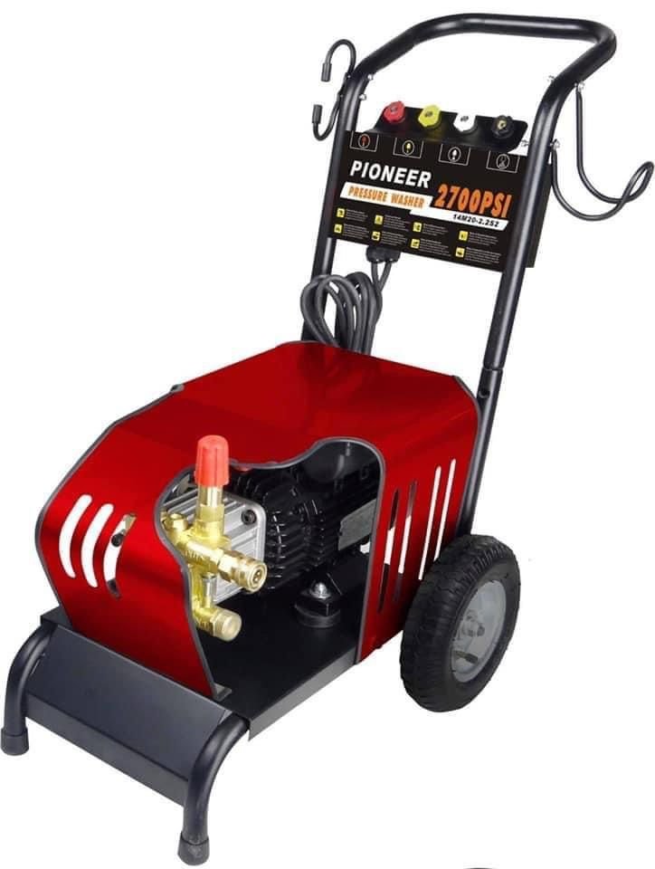 The Pioneer High Pressure Washer 2700 PSI is a versatile cleaning machine designed for both domestic and commercial use. With a maximum pressure of 2700 PSI, it delivers strong water jets capable of removing dirt, mud, and grease from vehicles, pavements, walls, and outdoor furniture.